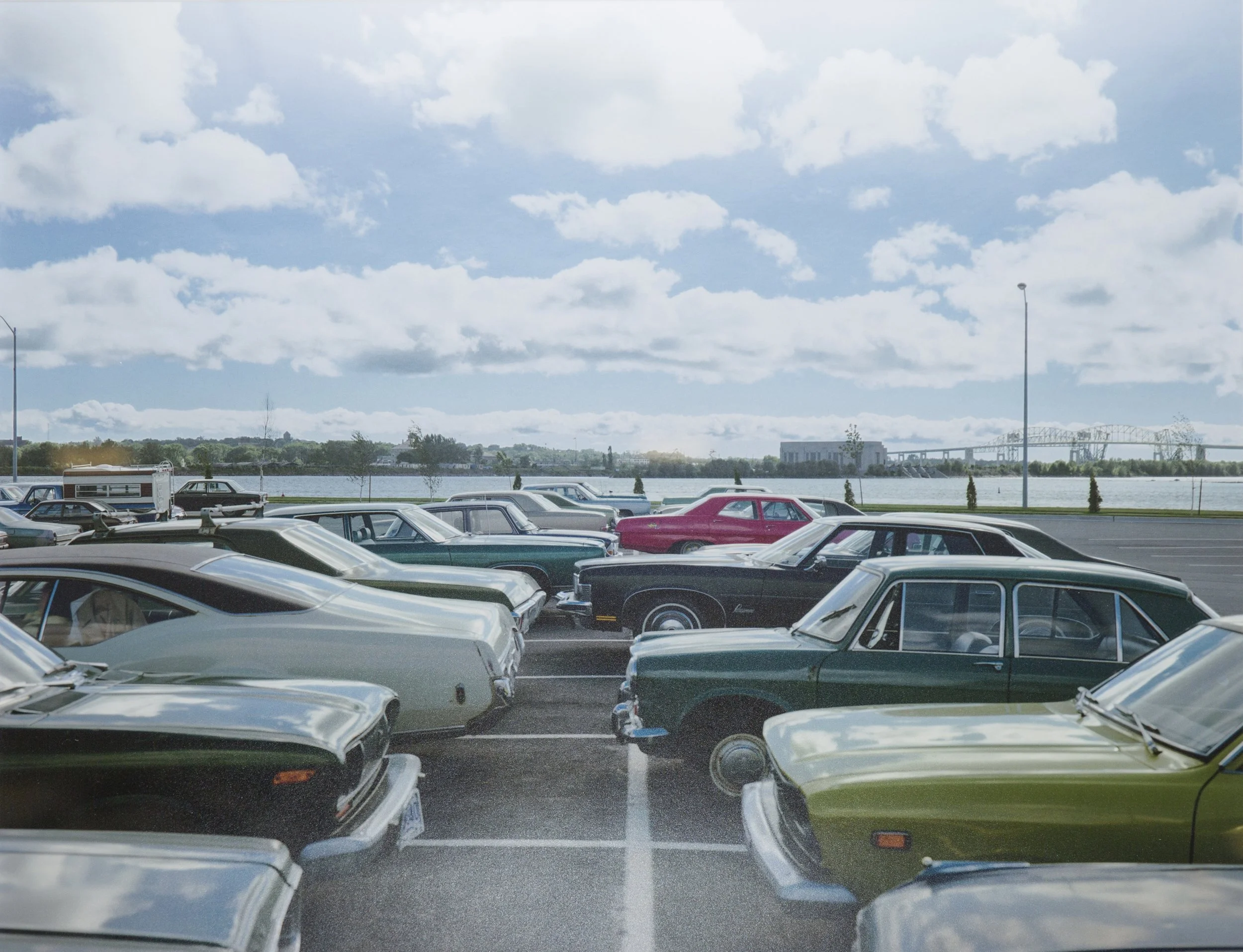 John Moore (b. 1941, St. Louis) is an American contemporary realist painter whose work explores studio interiors, urban architecture and in his most celebrated work, the post-industrial landscape. While his paintings evoke a sense of realism, Moore’s masterful surfaces upon close inspection do not concede to the rigid glossy façade of photorealism, instead maintaining a uniquely felt touch. Using a variety of detailed brushwork, the surfaces are built up in luminous layers of contrasting hues.