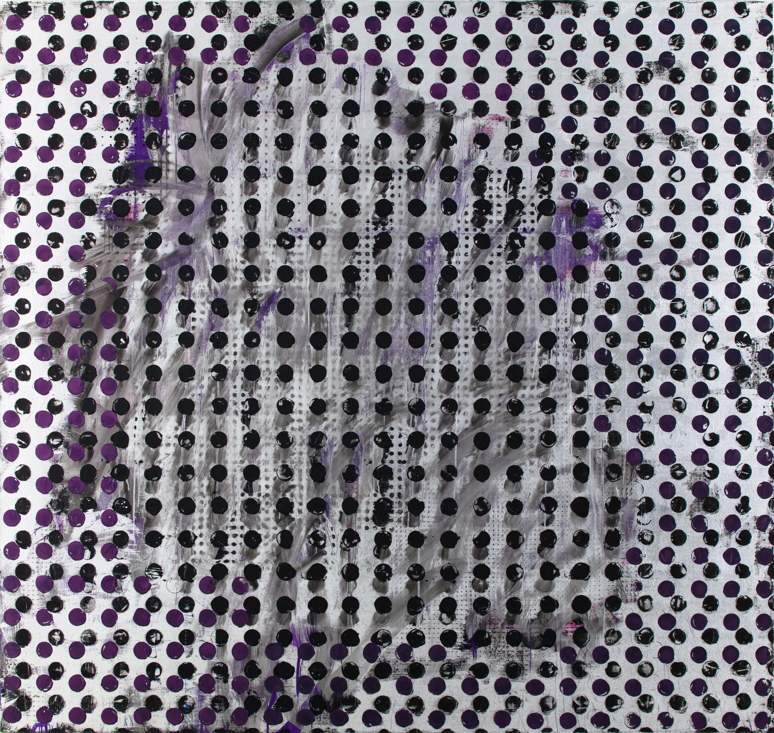 Born in New Orleans, Jacqueline Humphries (b. 1960) is an abstract painter who lives and works in New York. Over the course of her 30-year career, she has emerged as a singular force in contemporary art, an influential “artist’s artist” known for her signature abstract works in metallic and ultraviolet pigments. Her mark-making techniques serve her preference for the image to remain unresolved—she applies pigments one on top of another and then scrapes them away to reveal an enigmatic, layered picture plane. Describing her process, Humphries has said, “I start a painting by finishing it, then may proceed to unfinish it, make holes in it or undo it in various ways.”