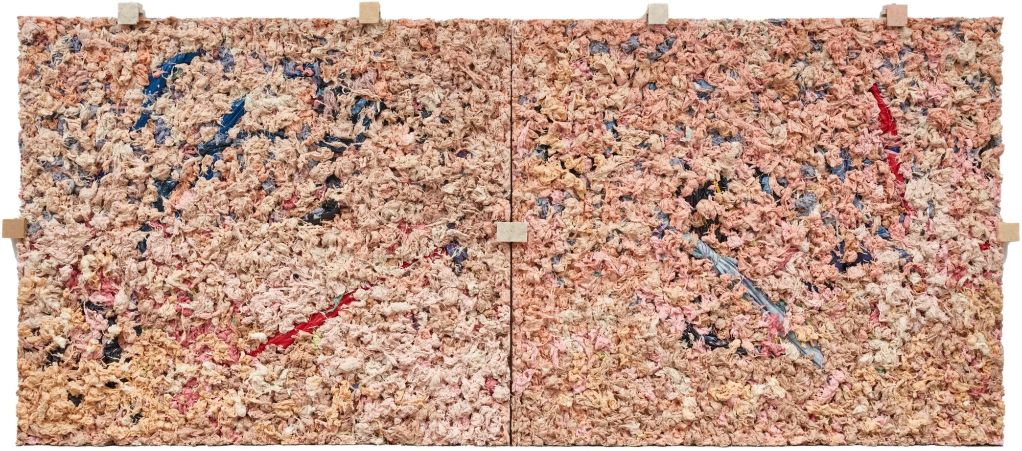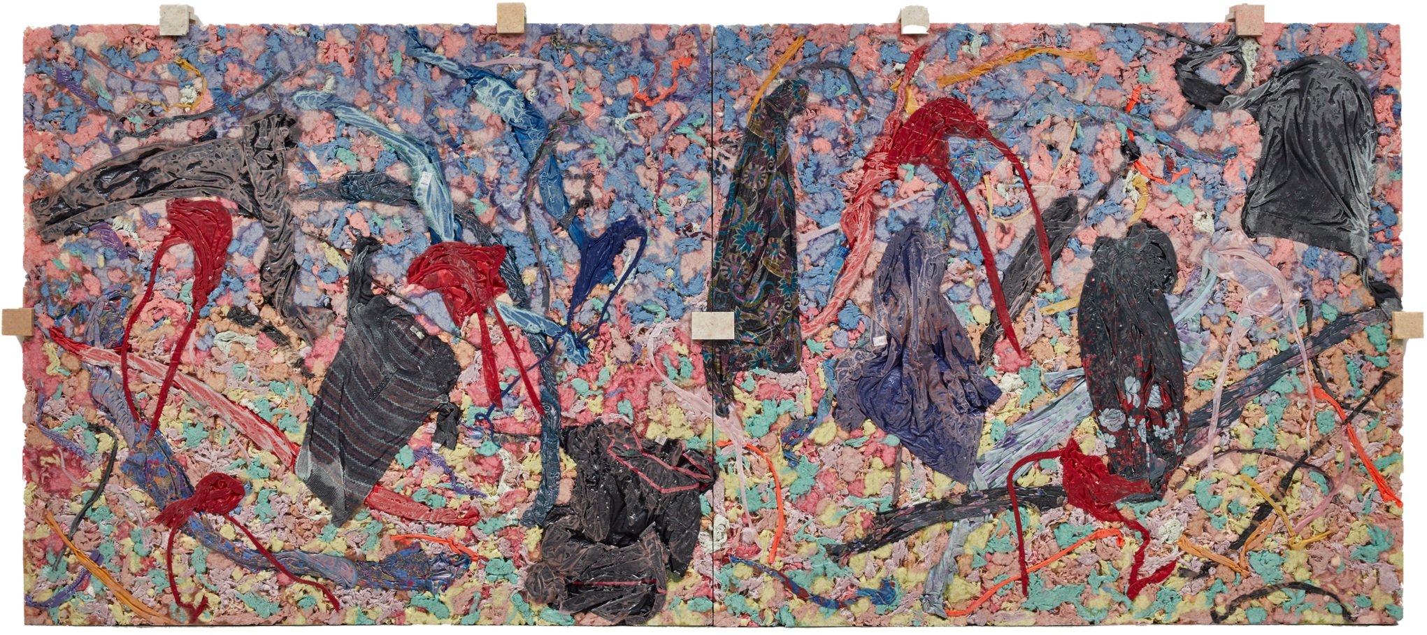 For Beasley, cotton is not just a material, it is a theme that touches on politics, social relationships, and of course, economics and reparations. “It all just unfolds and is laid out,” he says. At his show at the Whitney, Beasley constructed a series of sculptural works, comprised of various materials, that he calls “slabs.” He says: “They become ways of telling stories.” In his works, Beasley takes control over not just a material, but the systemic repression of Black people and artists, to construct something new.