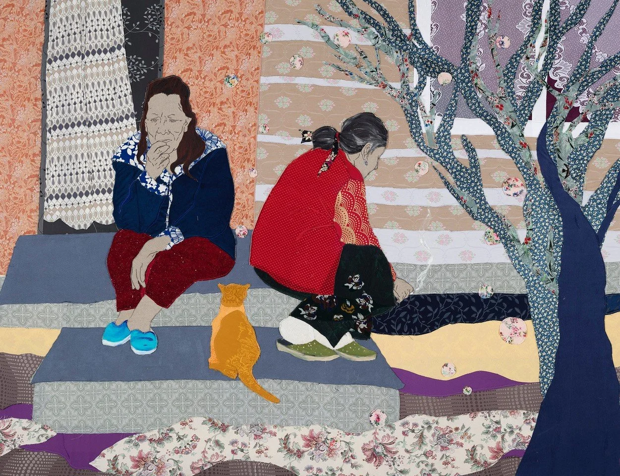 Patchwork and acrylic paint on stretcher